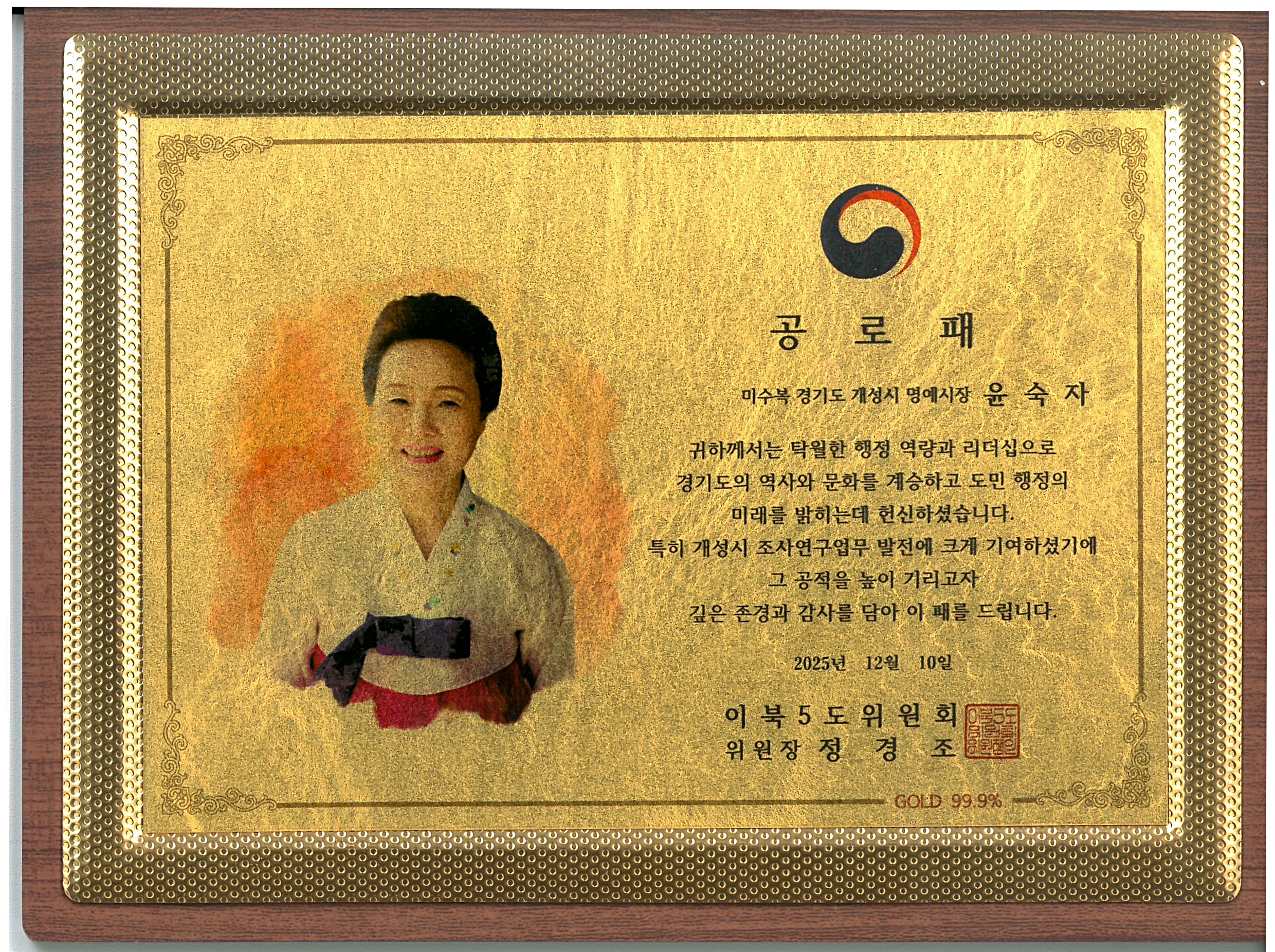 윤숙자 명예시장에 감사패