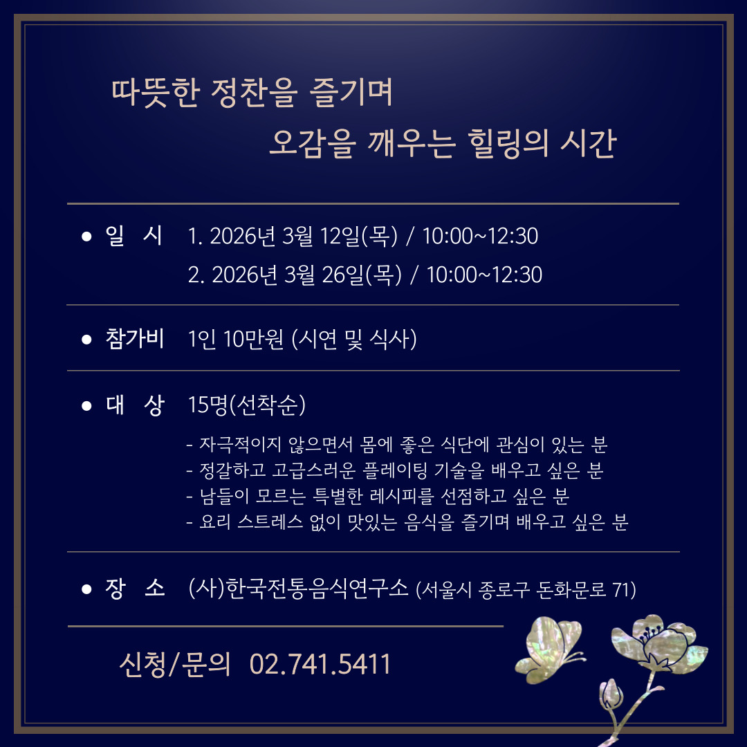 [모집] 미식기행 쿠킹클래스 '오색 진주를 품은 웰빙 밥상'