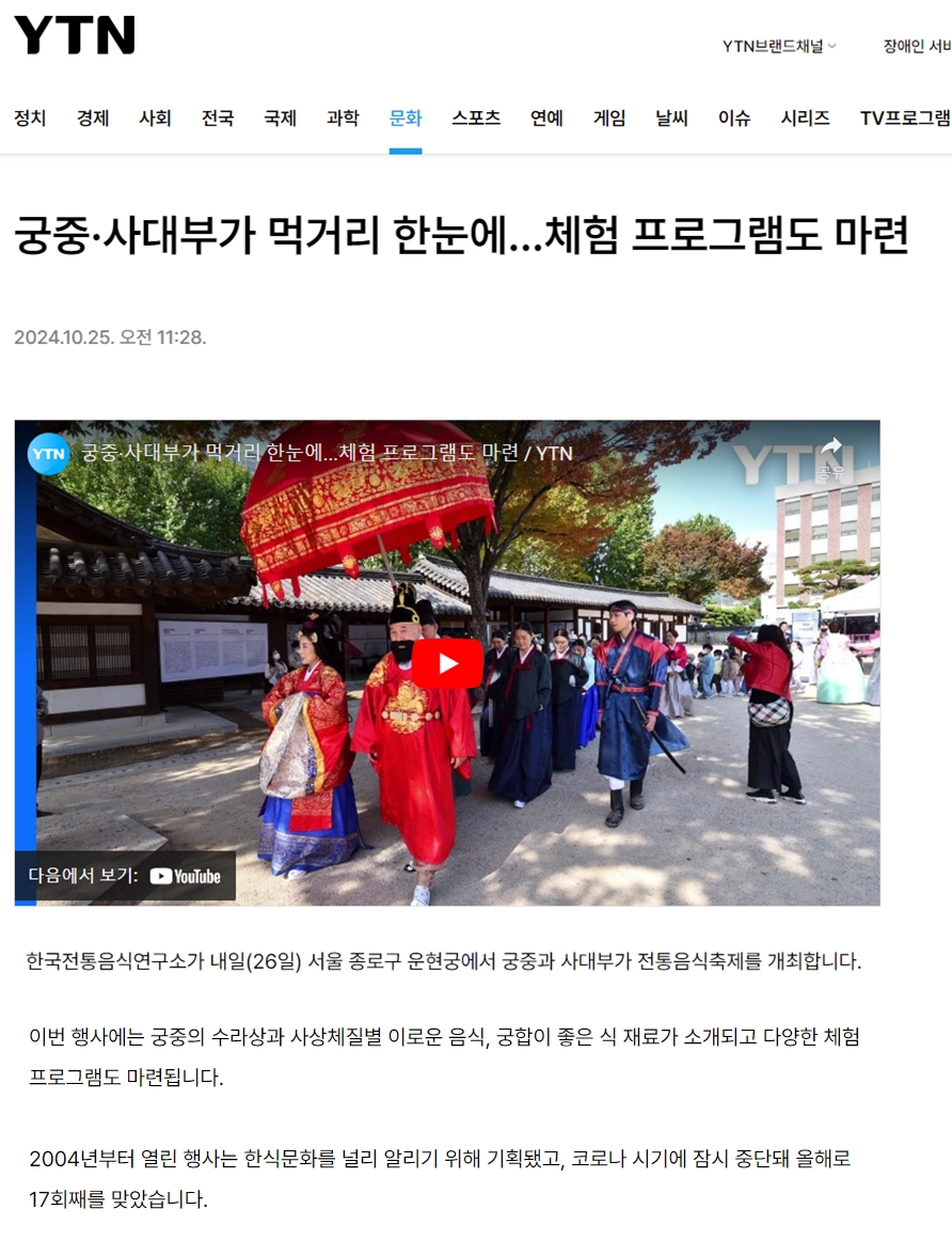 2025 대한민국 전통음식 대전, 남산골 한옥마을에서 열려