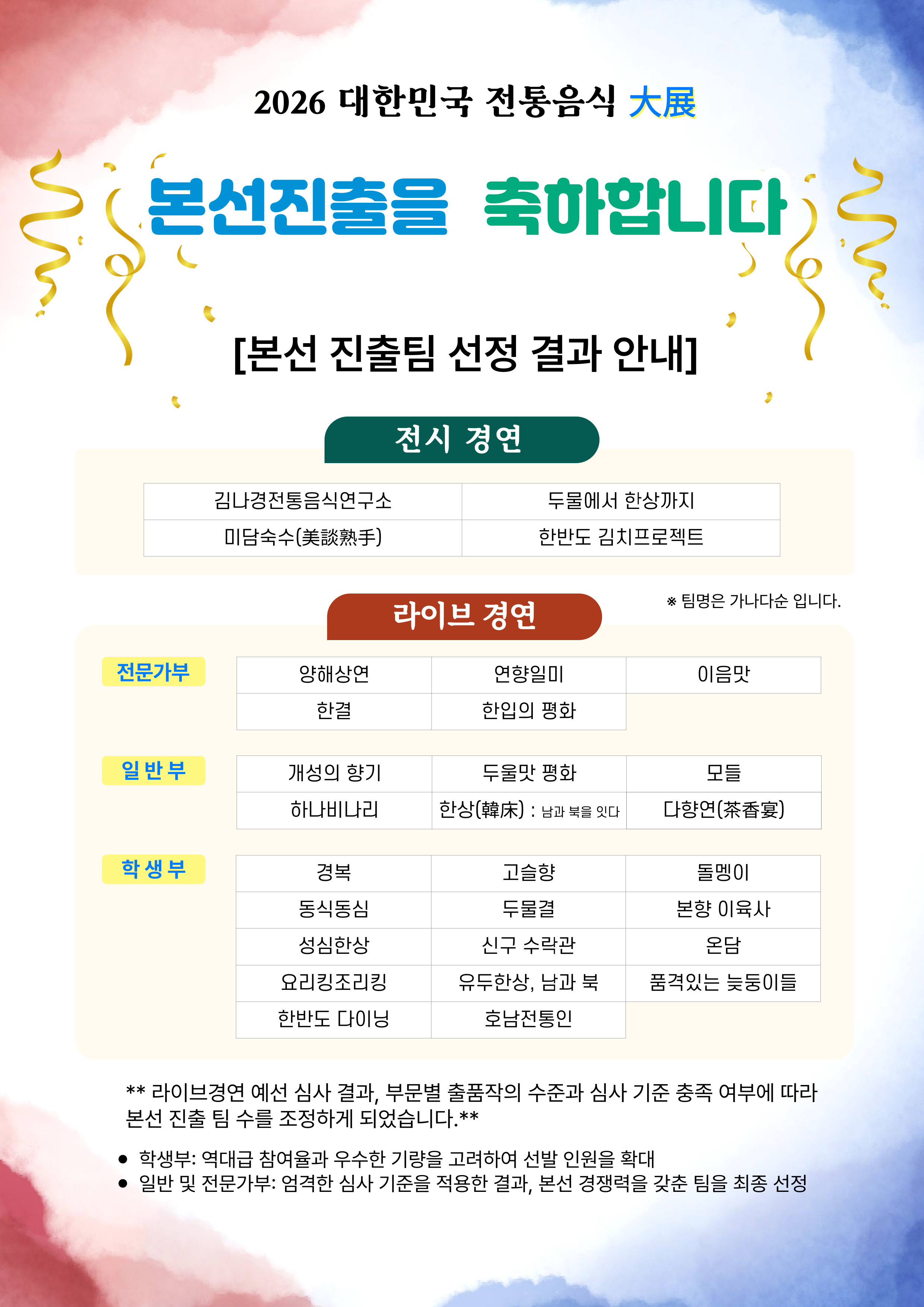 [발표] '본선진출팀' 2026 대한민국 전통음식대전